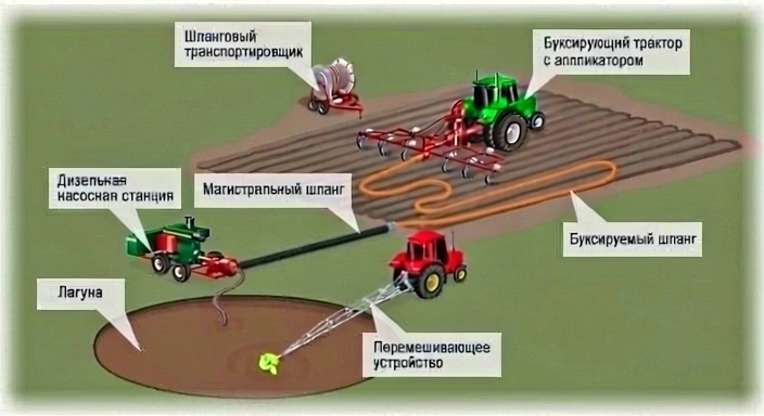 Внесение навоза на поле (внутрипочвенное или поверхностное)